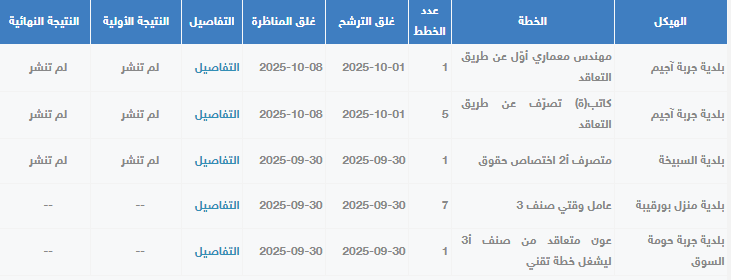 للإطلاع على بلاغات الترشح لكل بلدية والتسجيل في المناظرة اضغط على هذا الرابط : بوابة المناظرات العمومية